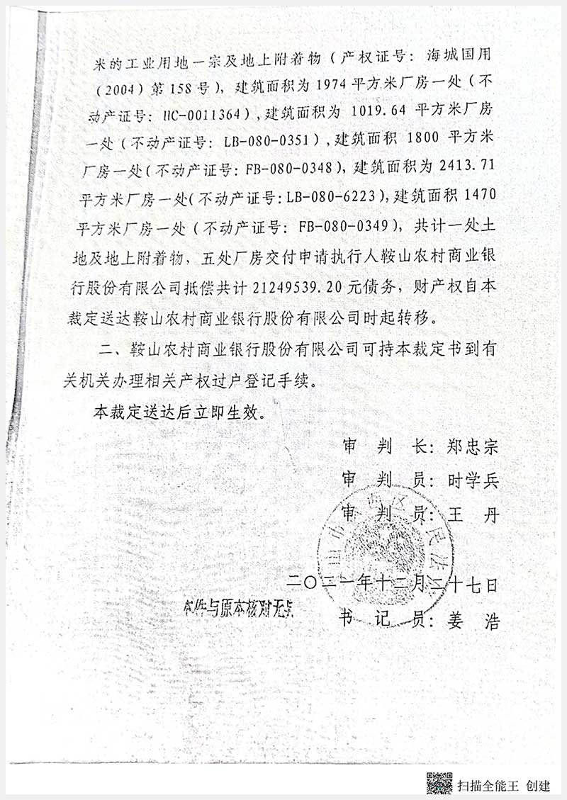 名稱:海城市毛祁鎮(zhèn)山后村房產(chǎn)及土地使用權(quán) 面積:房產(chǎn):14539.74㎡;土地:9300㎡ 瀏覽次數(shù):262