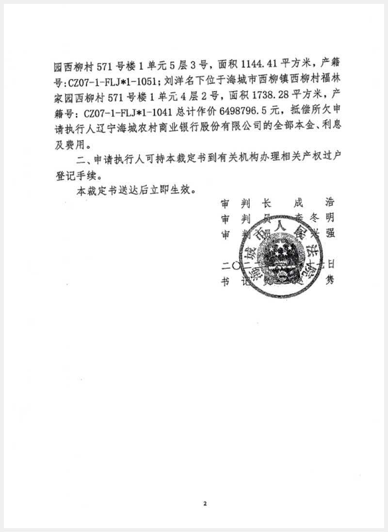 地址:海城市西柳鎮(zhèn)西柳村福臨家園西柳村571號 標(biāo)的號:213-2
