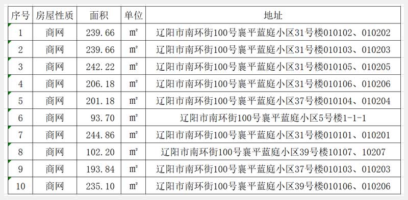 10號 遼陽市南環(huán)街100號襄平藍庭小區(qū)10處門市