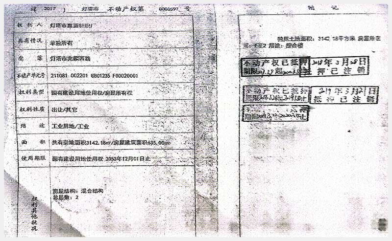 名稱:燈塔市兆麟西路廠房及土地使用權(quán) 面積:房產(chǎn):1235㎡;土地:3142.18㎡ 瀏覽次數(shù):328