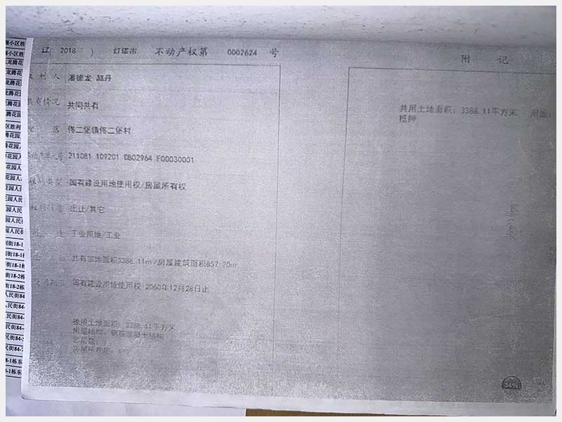名稱:燈塔市佟二堡鎮(zhèn)佟二堡村房產(chǎn)及土地使用權(quán) 面積:房產(chǎn):有證:3079.06㎡,無證:139.3㎡;土地:3388.11㎡ 瀏覽次數(shù):48