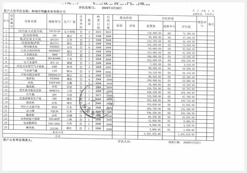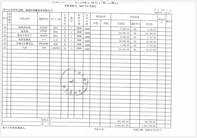 42號 海城市利鑫米業(yè)有限公司所有的機器設(shè)備