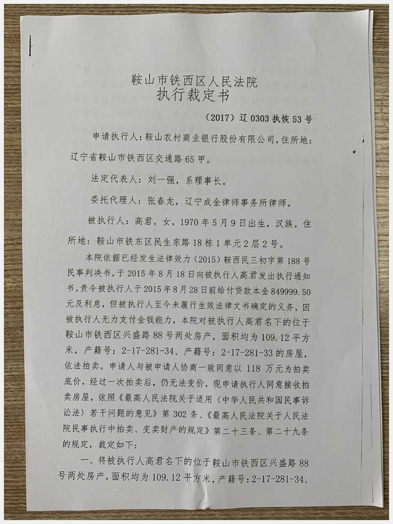 50號 鞍山市鐵西區(qū)興盛路88號2處房產(chǎn)