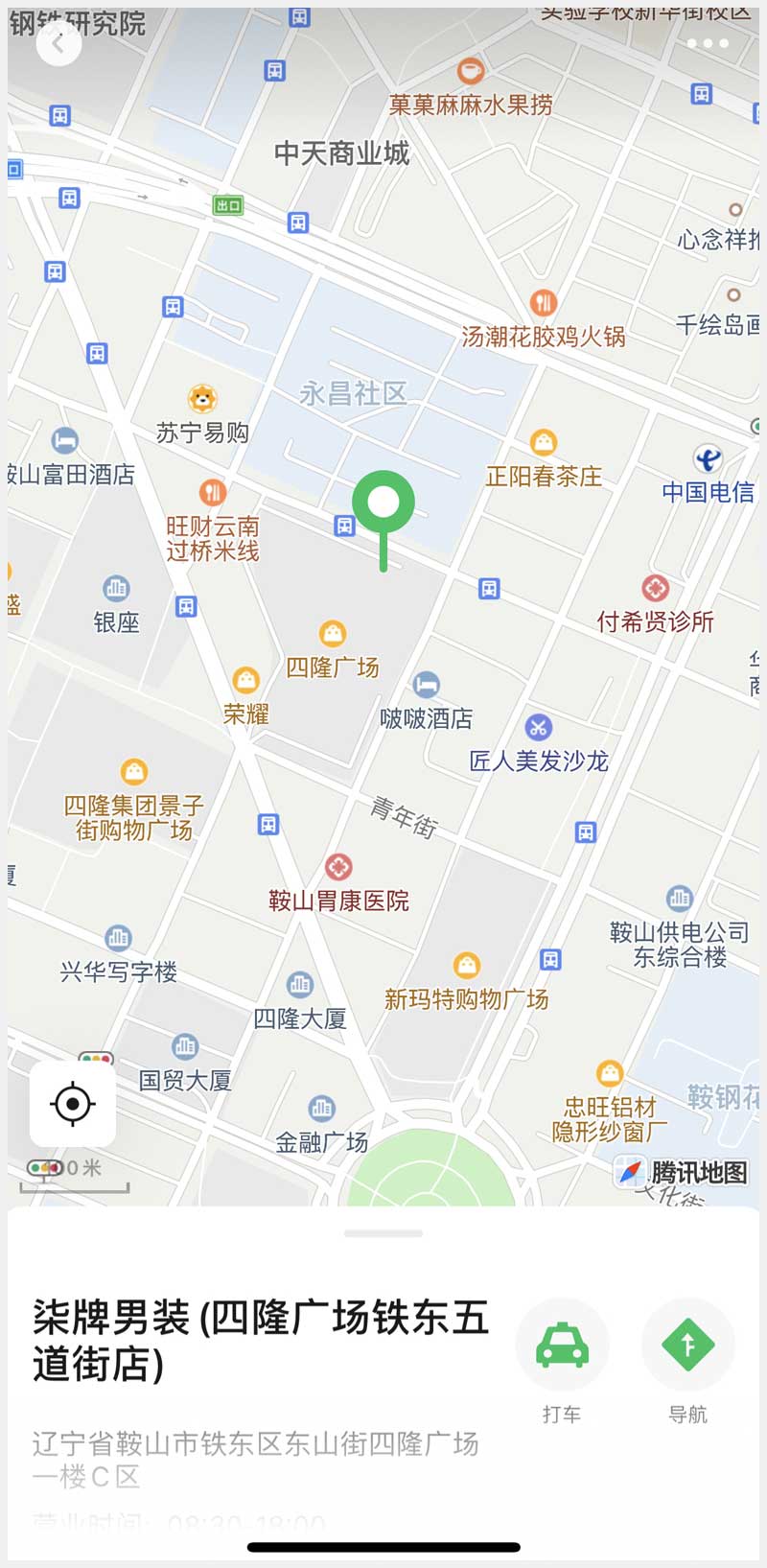 地址:鞍山市鐵東區(qū)青年街四隆廣場(chǎng) 標(biāo)的號(hào):139