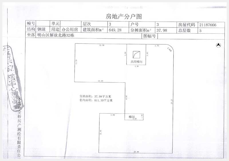 名稱:本溪市明山區(qū)解放北路32東3層房產(chǎn) 面積:649.28 ㎡ 瀏覽次數(shù):977