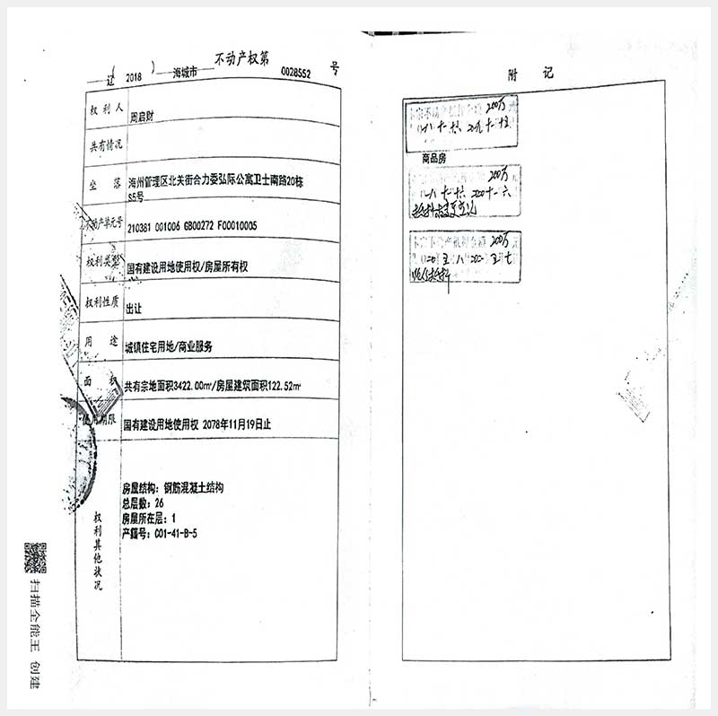 120號(hào) 海城市海州管理區(qū)北關(guān)街合力委弘際公寓衛(wèi)士南路20棟S5號(hào)房產(chǎn)