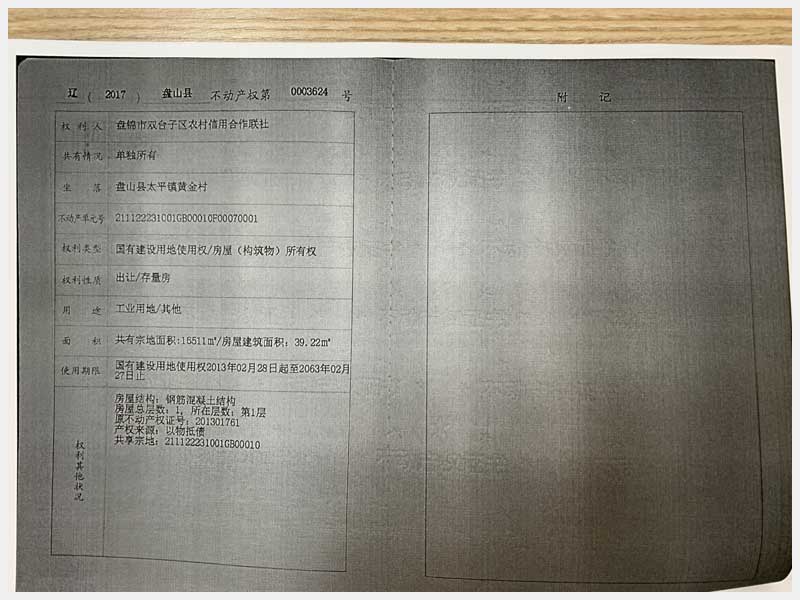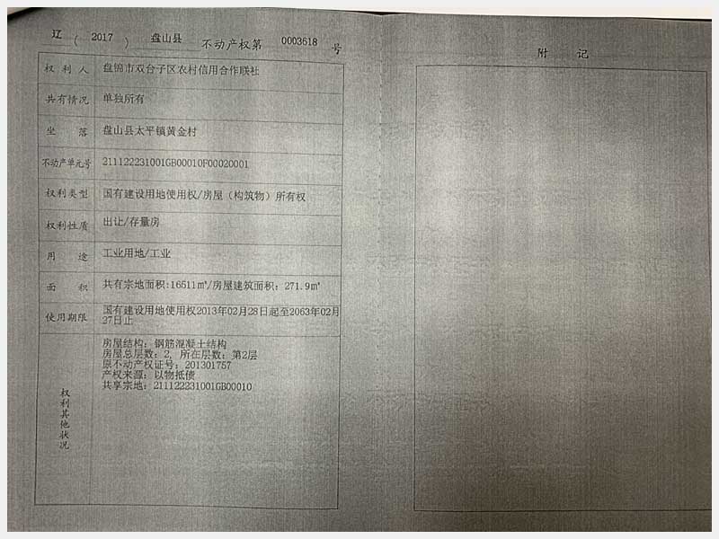 4號 盤錦盤山縣太平鎮(zhèn)黃金村房產(chǎn)及土地使用權(盤錦晟新電氣有限公司)