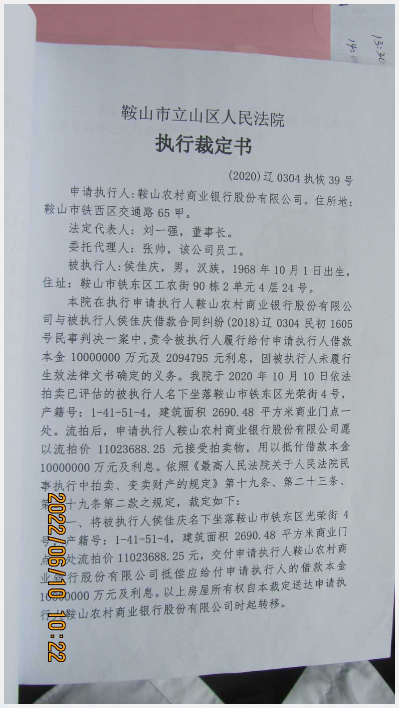 地址:鞍山市鐵東區(qū)光榮街4號 標(biāo)的號:72