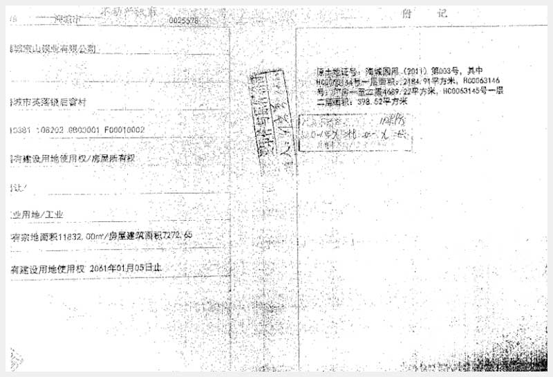 名稱:海城市英落鎮(zhèn)后窨村房產(chǎn)、土地使用權(quán)及機器設(shè)備 面積:房產(chǎn):有證:7272.65㎡,無證:5963.33㎡;土地:11832㎡;設(shè)備:776套 瀏覽次數(shù):1136