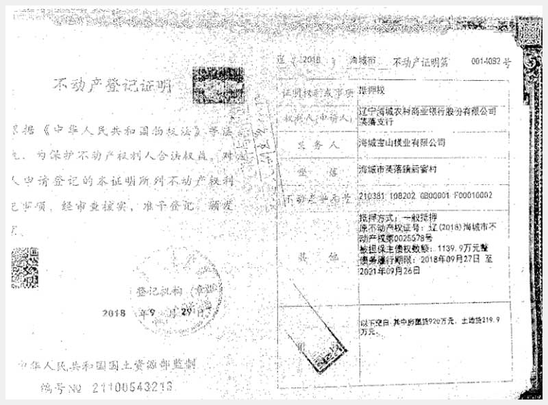 181號 海城市英落鎮(zhèn)后窨村房產(chǎn)、土地使用權(quán)及機器設(shè)備