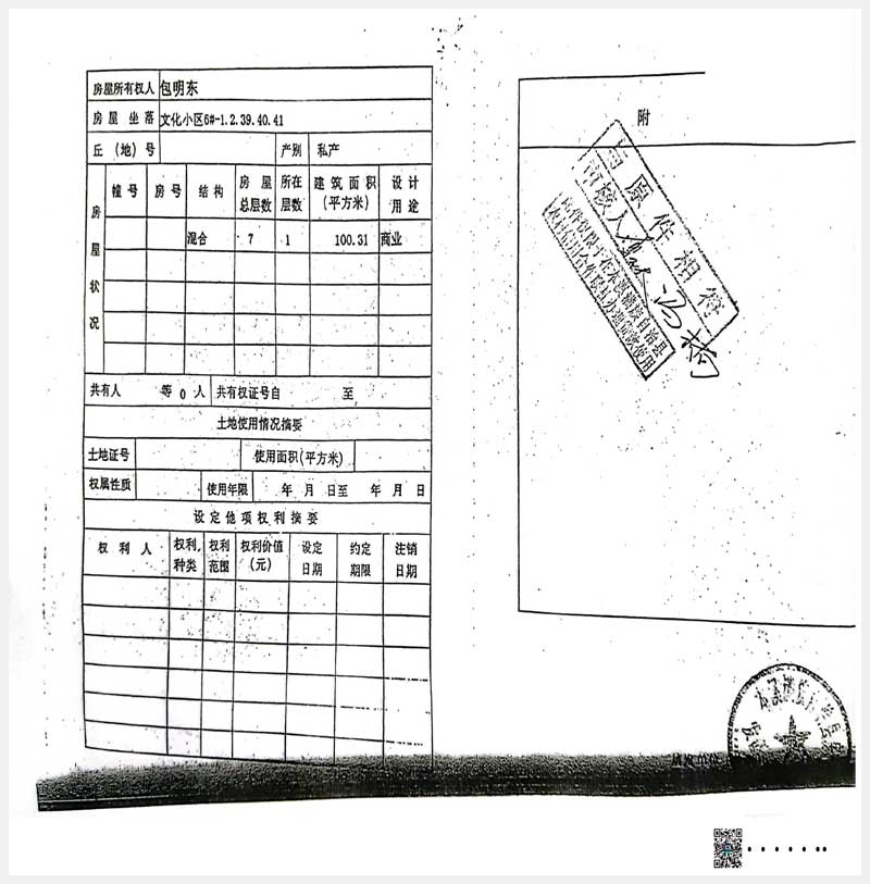 名稱:本溪滿族自治縣文化小區(qū)6#-1.2.39.40.41房產(chǎn) 面積:100.31㎡ 瀏覽次數(shù):383