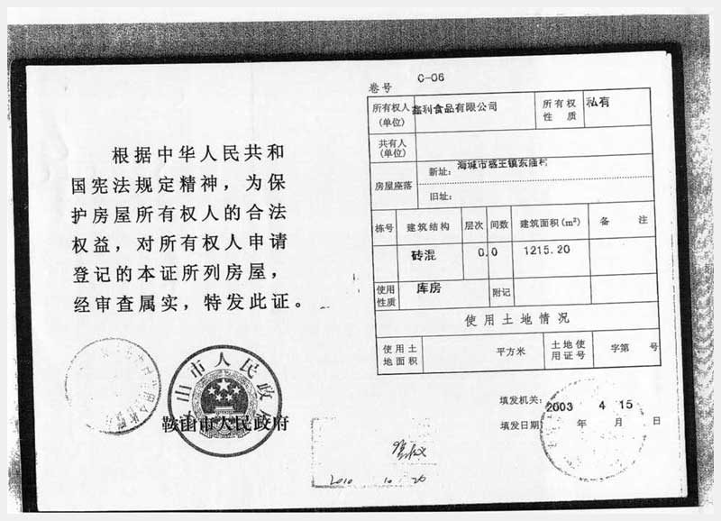 30號 鑫利食品所屬的位于感王鎮(zhèn)東廟村的房產(chǎn)及土地使用權(quán)