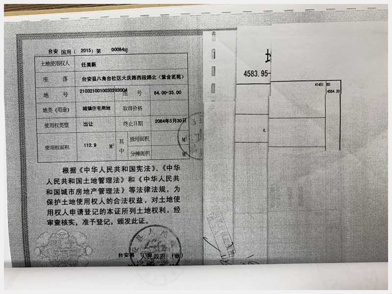 地址:臺(tái)安鎮(zhèn)大慶路西段北紫金茗苑 標(biāo)的號(hào):35