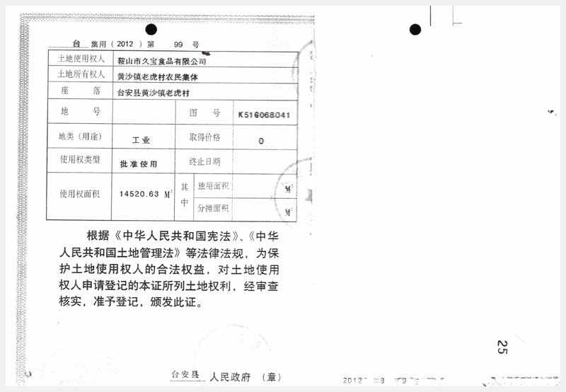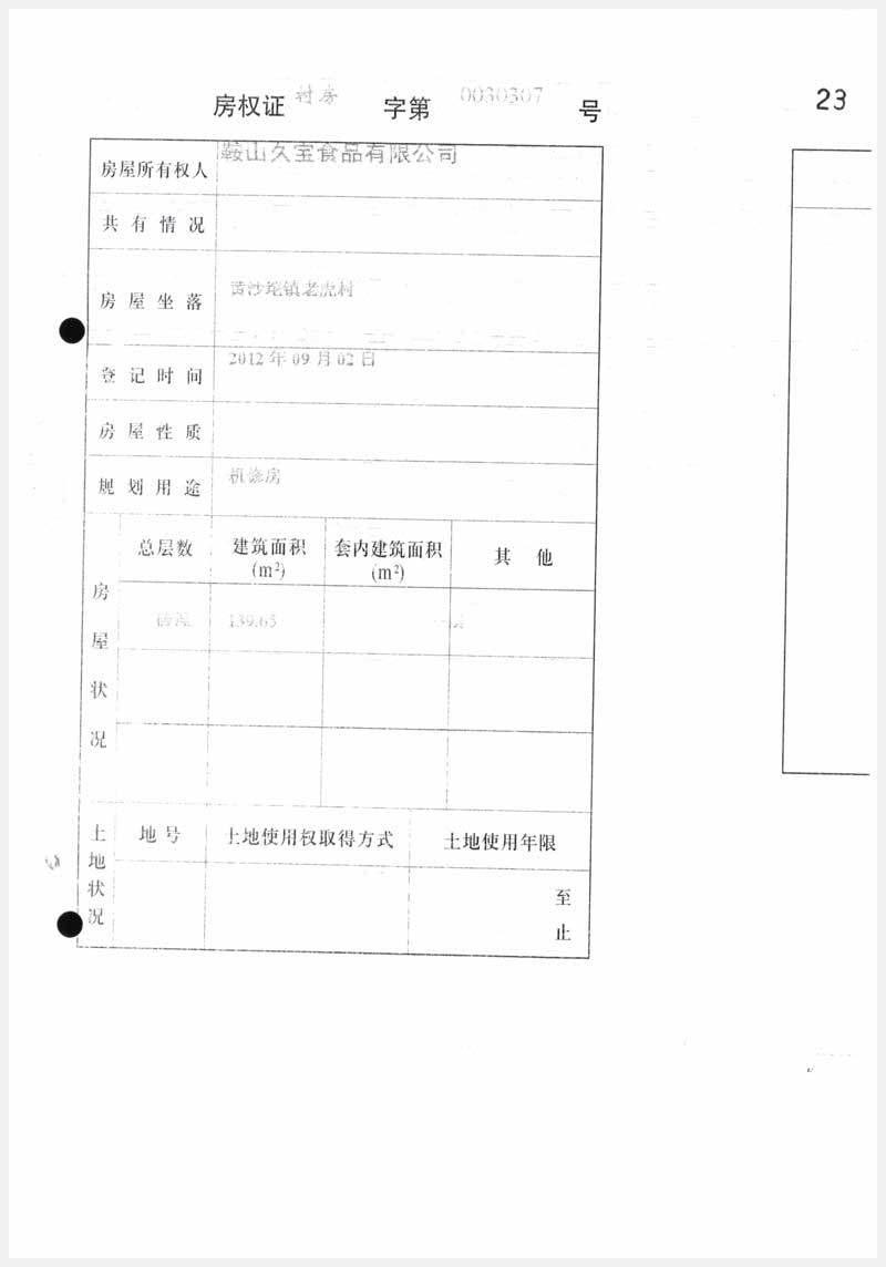 名稱:臺(tái)安縣黃沙坨鎮(zhèn)老虎村房產(chǎn)及土地使用權(quán) 面積:房產(chǎn):6178.13㎡;土地:14520.63㎡ 瀏覽次數(shù):1072